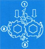 兩個反向旋轉(zhuǎn)的軸致使顆粒物在雙軸間被粉碎