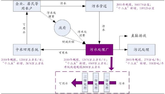 (2) 污水管道從2010年的16億公里上升到31億公里,污水供給量會(huì )相應提高,小城鎮污水處理市場(chǎng)抬頭。